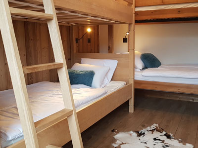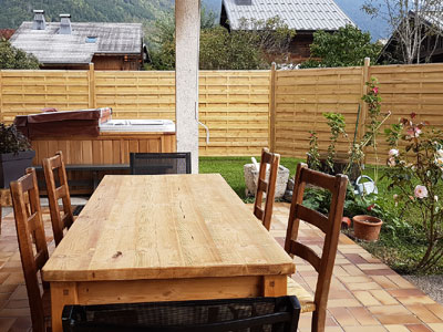 The ground floor of Chalet Mugnier has been fully renovated recently. This self catered unit of 98m² accommodate 6 people comfortably (8 for some cases, bunks) in 3 bedrooms. It is furnished with all the modern equipment to meet your requirement: Dish washer, washing machine, dryer, fridge, oven, micro wave, satellite TV decoder with british and worldwide channel, Free independant wifi network. 2 parking places, equiped SkiRoom with boot dryer and Bike locker (only available during winter season). Bonus: 20m² of terrace facing south, an en-suite bedroom meet the standards for desabled, outdoor Spa, fire place.